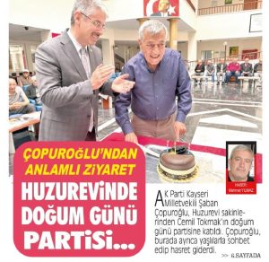 AK Parti Kayseri Milletvekili Şaban Çopuroğlu; Huzurevini ziyaret ederek huzurevi sakinlerinden Cemil Tokmak’ın doğum gününü kutladı.