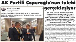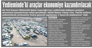 AK Parti Kayseri Milletvekili Şaban Çopuroğlu’nun, yedieminde bekleyen araçların ekonomiye kazandırılması yönündeki talebi hayata geçirildi.